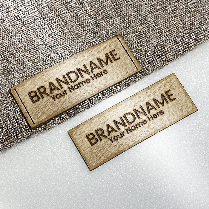 Etiketa od prave kože po narudžbi, laserski gravirana i izrezana prema prikazanim dimenzijama.